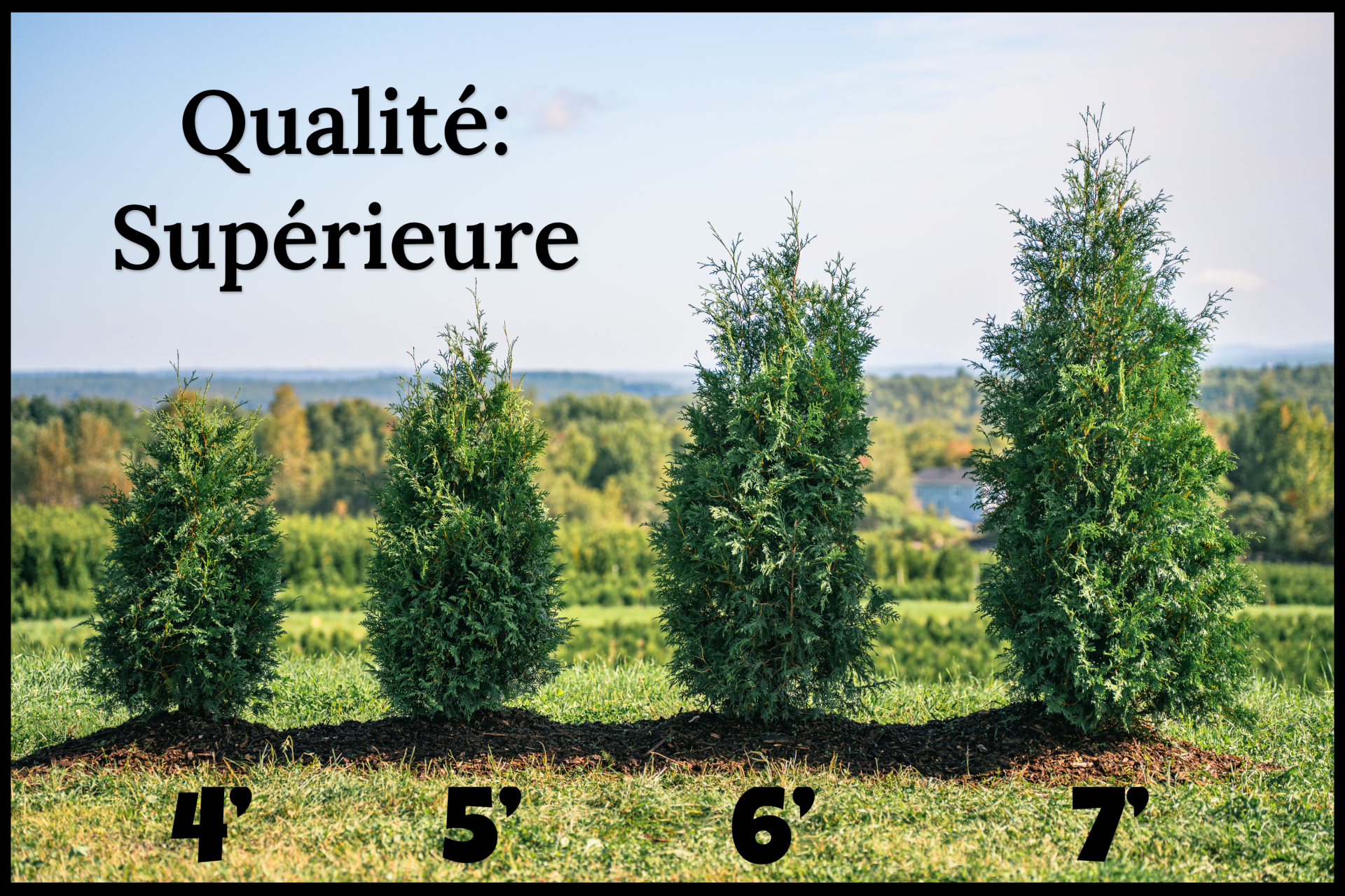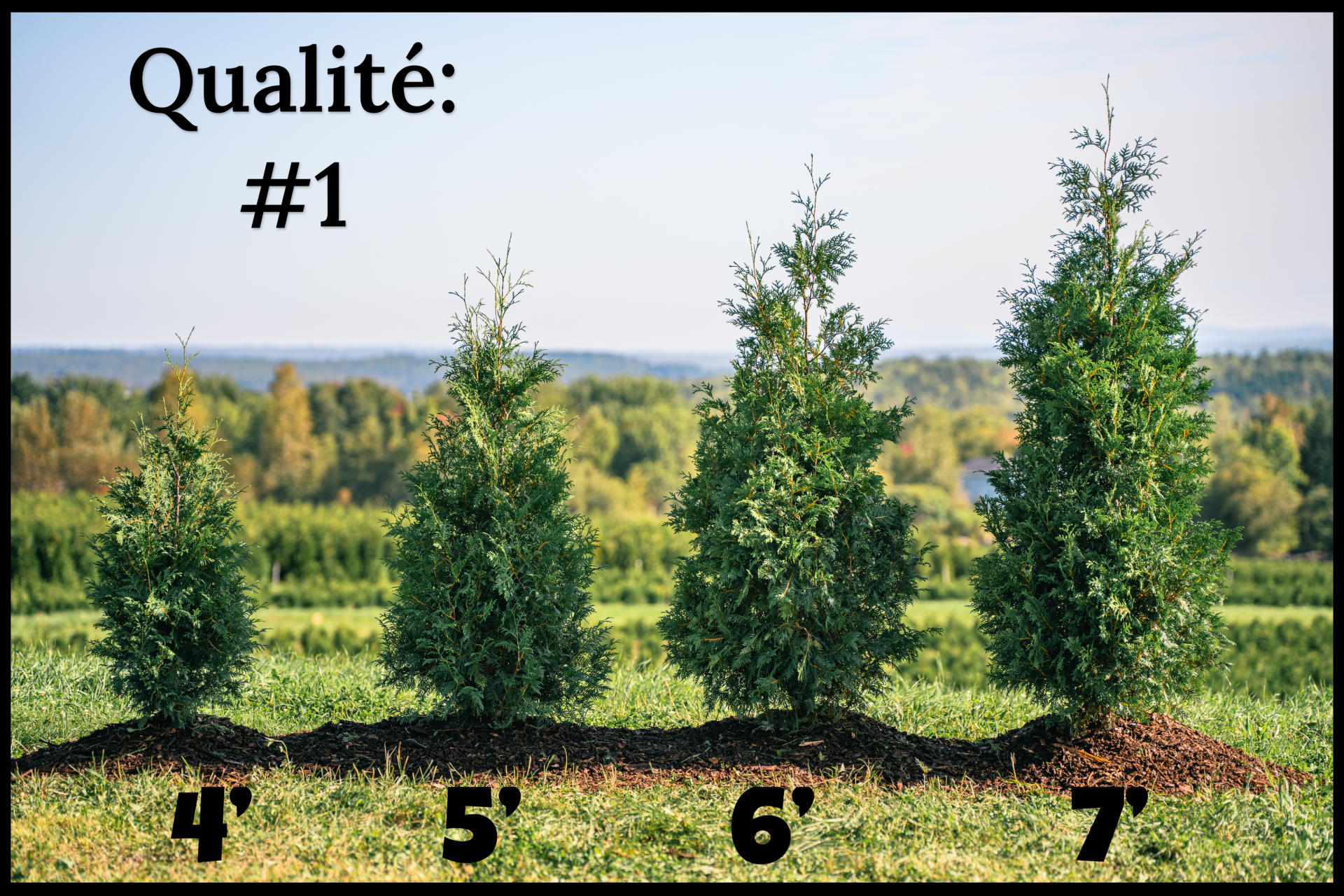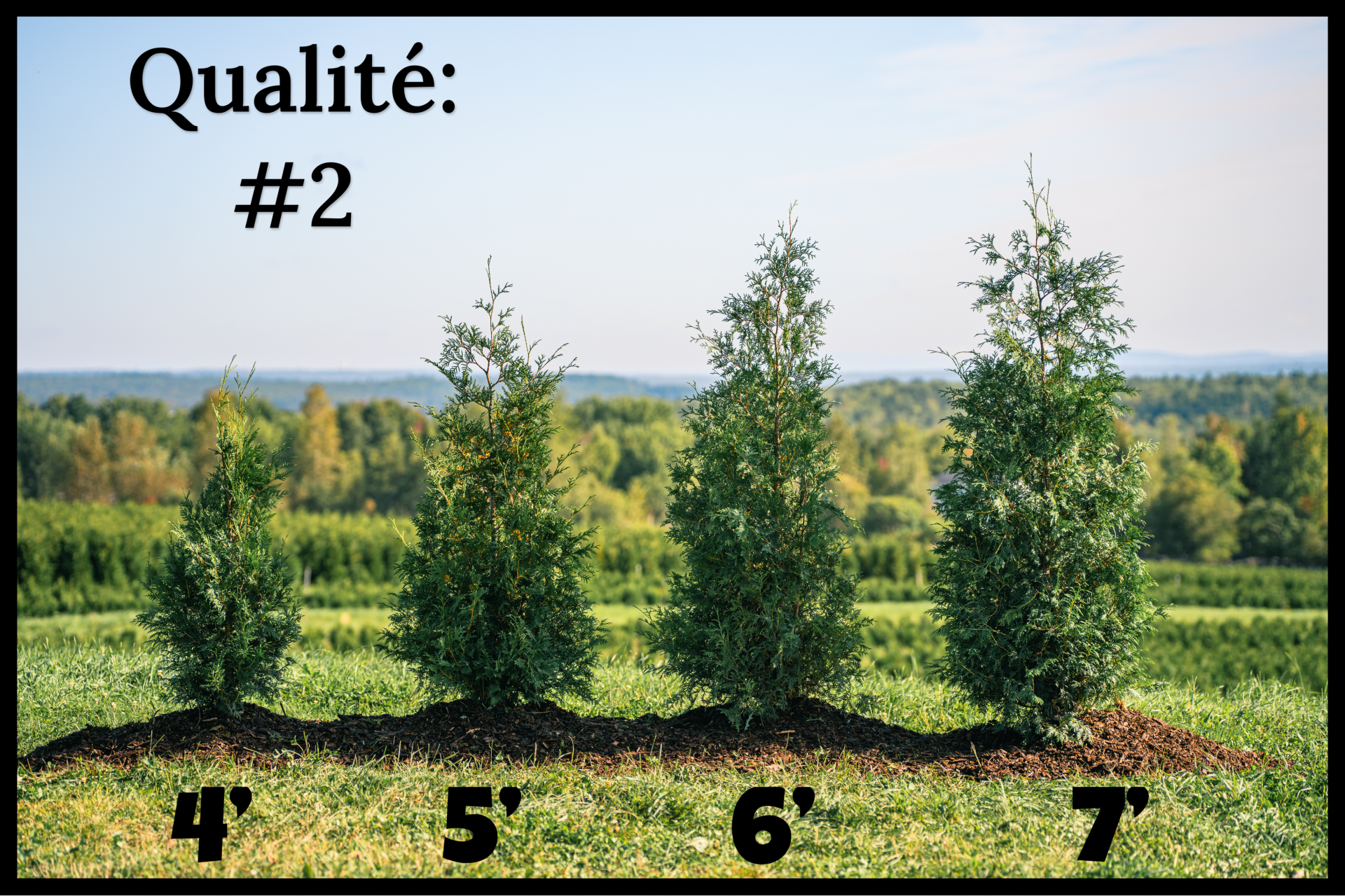Les cèdres de qualité #1 présentent également une garniture dense sur les quatre faces, mais la densité de la tête peut être légèrement inférieure à celle des cèdres de grade supérieur. Cela peut se traduire par un aspect légèrement moins dense en haut de la haie par rapport au grade supérieur. Les cèdres de qualité #1 offrent néanmoins une bonne qualité et une belle apparence pour une haie intime.